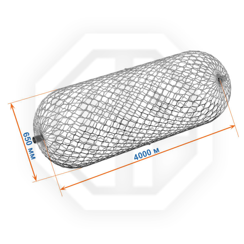 Габион цилиндрический 4х0,65х1,32 оцинкованный, Ø проволоки 2,7мм, размер ячейки 8х10 см м.