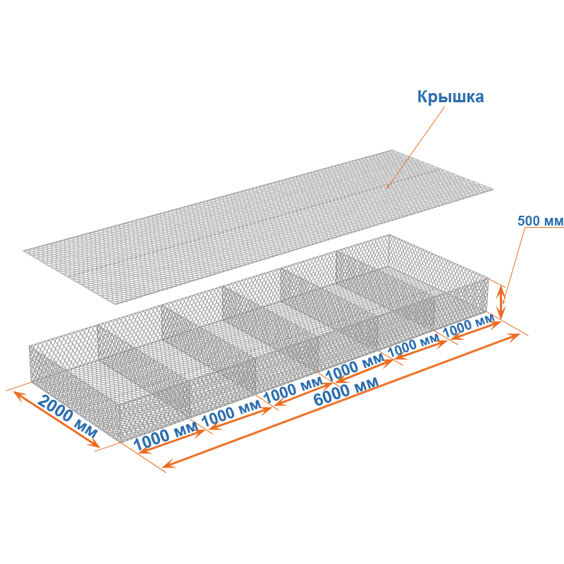 Матрасы Рено 6х2х0,5 (ячейка 60х80, проволока 2,2 мм, покрытие Цинк) применяются для защиты от эрозии.