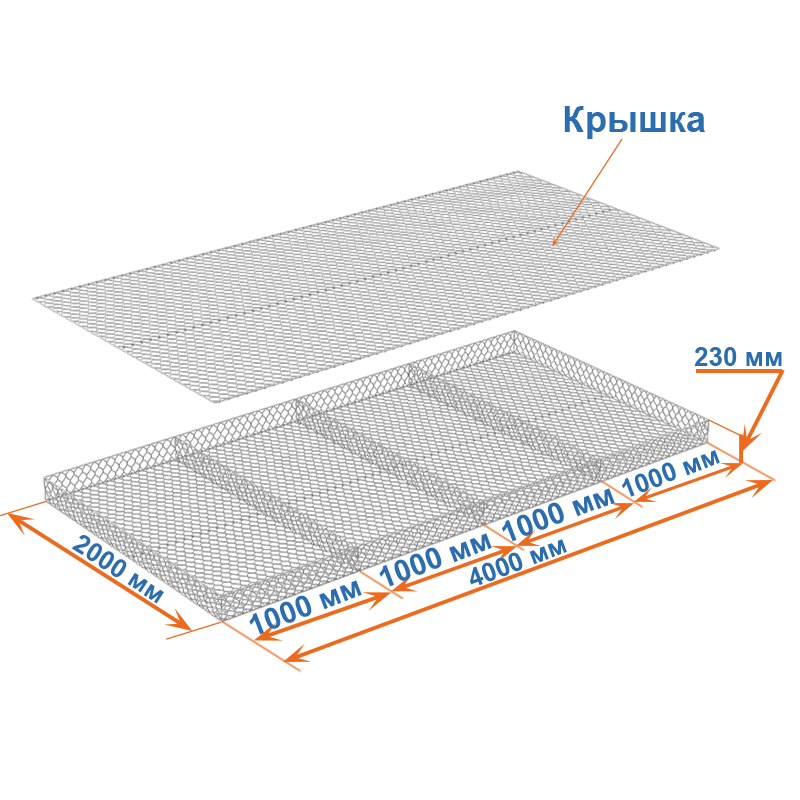 Габион матрац ГСИ-М 4х2х0,23 оцинкованный, Ø проволоки 2,4 мм, размер ячейки 6х8 см фото